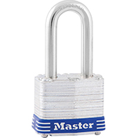 Master Lock Laminated Padlock, Different Key, 9/32 in Shackle Diameter, 1-1/2 in Shackle Height, 5/8 in Shackle Width, Hardened Steel Shackle, 4 Pins, Cylinder Pin, 1-1/2 in Body Length, 1-9/16 in Body Width, Steel Body, For Residential Gates and Fences, Sheds, Workshops, Garages, Storage Lockers, Tool Chests and Tool Boxes