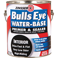 Zinsser Primer Sealer, Series: Bulls Eye, 1 gal, Can Packing, Water Base, Acrylic Resin, Liquid, White, Mild Odor/Scent, 400 sq-ft Coverage, 30 min to Touch, 1 hr to Recoat Drying Time, 1.383 Specific Gravity, >200 deg F Flash Point, 95 g/l VOC, 50 - 90 deg F, Suitable For Use With: Synthetic Bristle Brush, Roller or Airless Sprayer