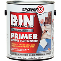 Zinsser B-I-N Advanced Synthetic Shellac Primer is a professional-grade, white-pigmented sealer engineered for ultimate stain-blocking and superior adhesion on challenging surfaces. This low-odor formula effectively seals severe stains from water, smoke, and fire damage while permanently blocking persistent odors from pets and tobacco. It features a fast-drying composition that is touch-dry in 25 minutes and ready for a recoat in just 45 minutes, adhering to slick surfaces like tile, glass, and glossy paints without the need for sanding. Ideal for whole-surface interior priming and exterior spot priming, it provides a smooth, flat finish that ensures excellent enamel holdout and topcoat consistency.