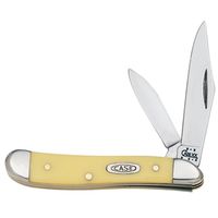 Case Pocket Knife, Peanut, Series: 30, 3220 Chrome Vanadium Steel Blade, Clip and Pen Blade, Jigged Bone Handle, Yellow Handle, 2 Blades, 2-7/8 in Closed Overall Length